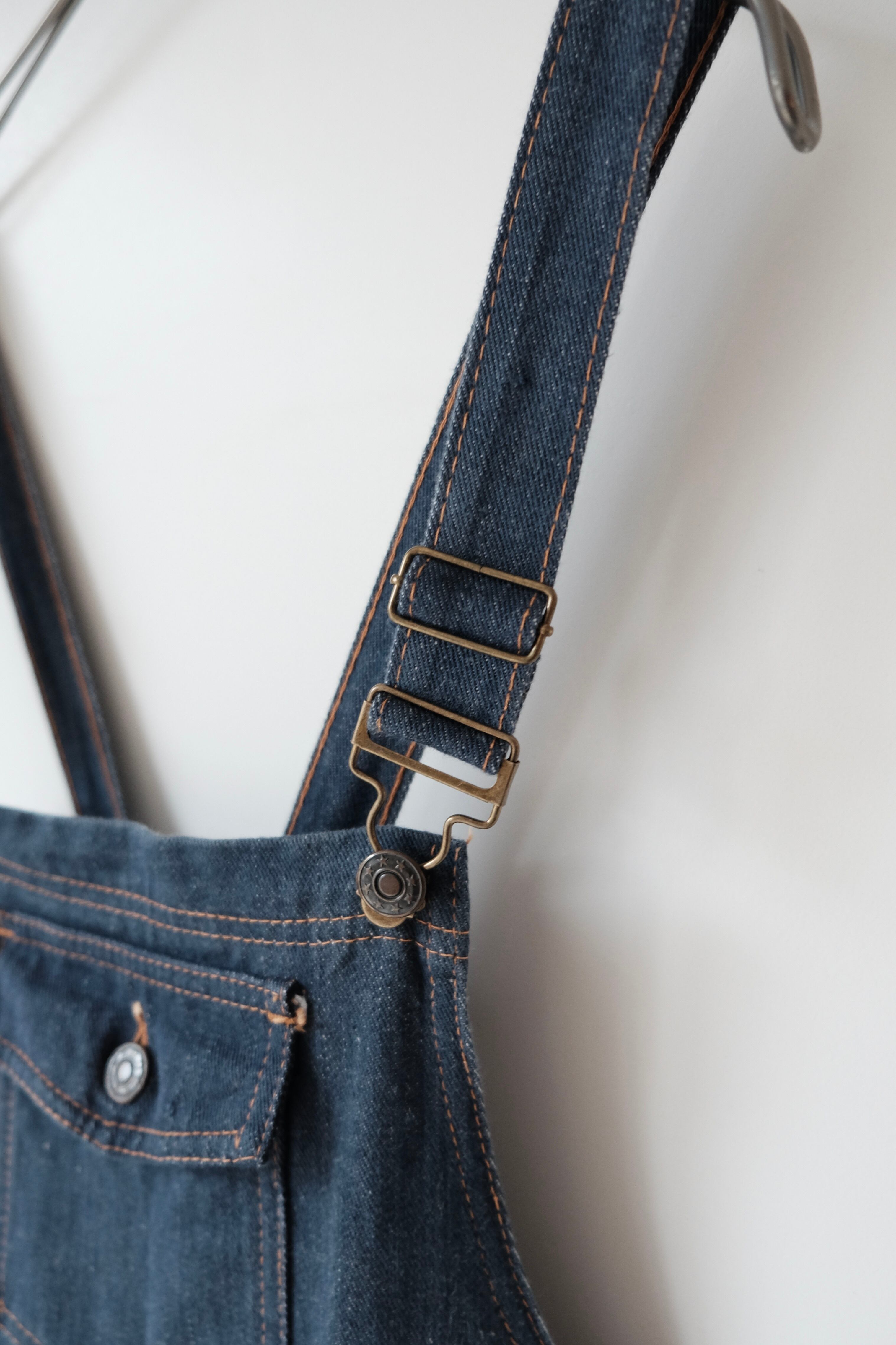 大きなフラップポケットが付いたデニムサロペット。フィンランドで見つけた1970〜80年代頃のヴィンテージの品です。