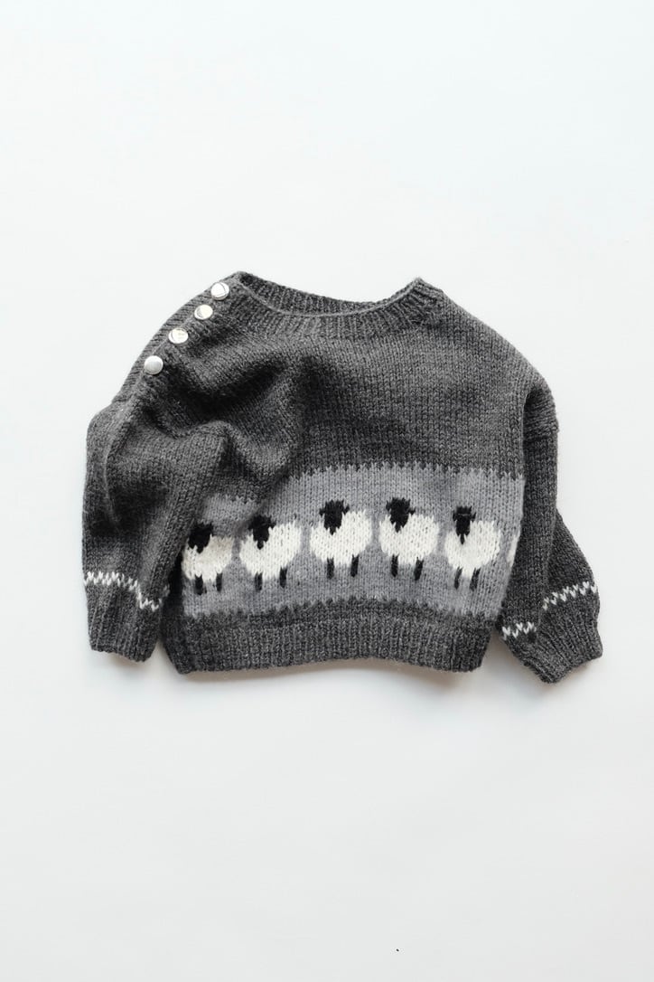ふんわりあたたかな手触りが心地よい、羊柄のニットセーター。フィンランドで見つけた手編みのアイテムです。