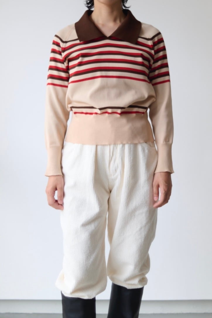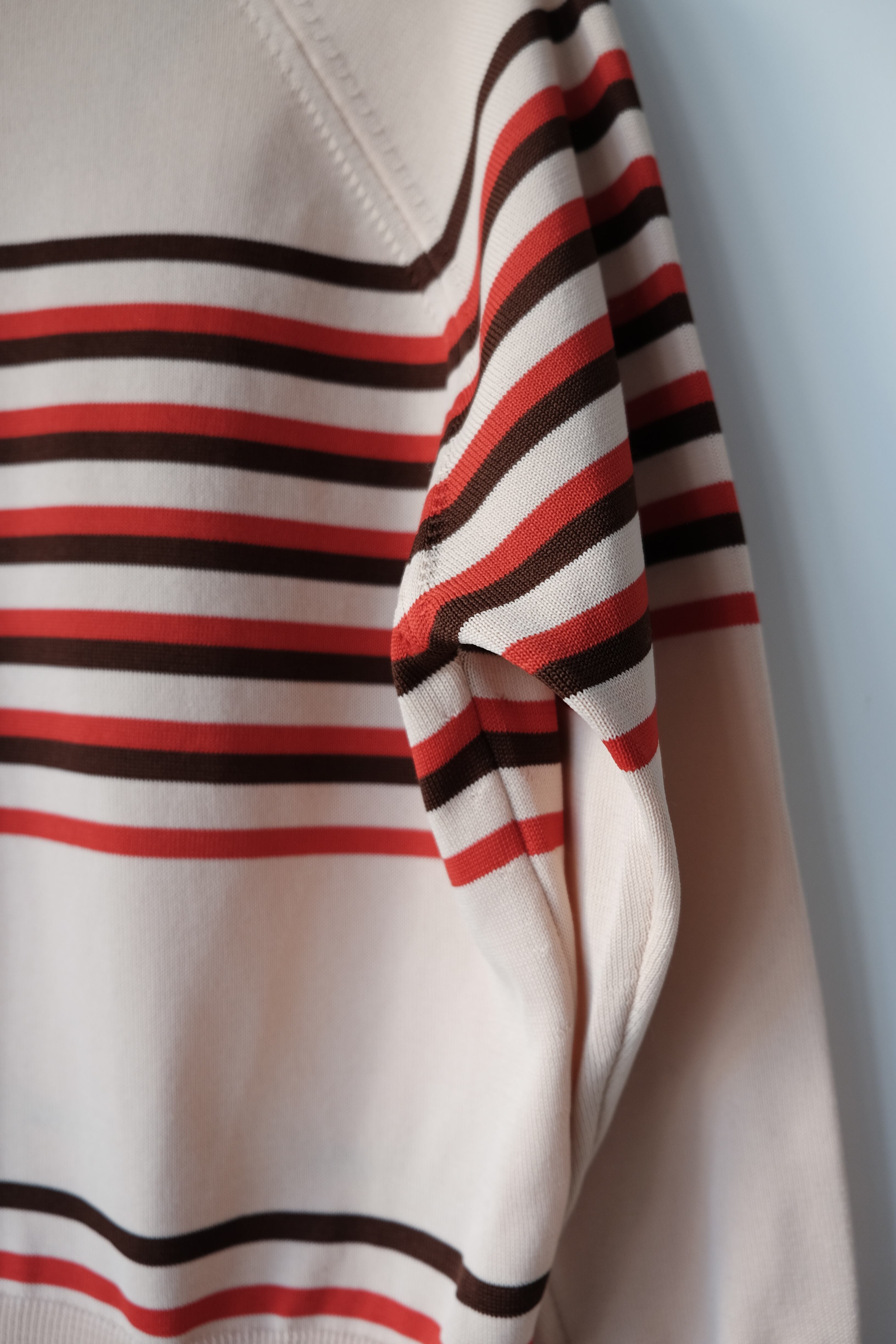ミルクティーベージュをベースに、ブラウン×レッドのストライプを組み合わせたレトロなムードのトップス。薄手のジャージー生地を使用したロシア製と思われるヴィンテージアイテムです。