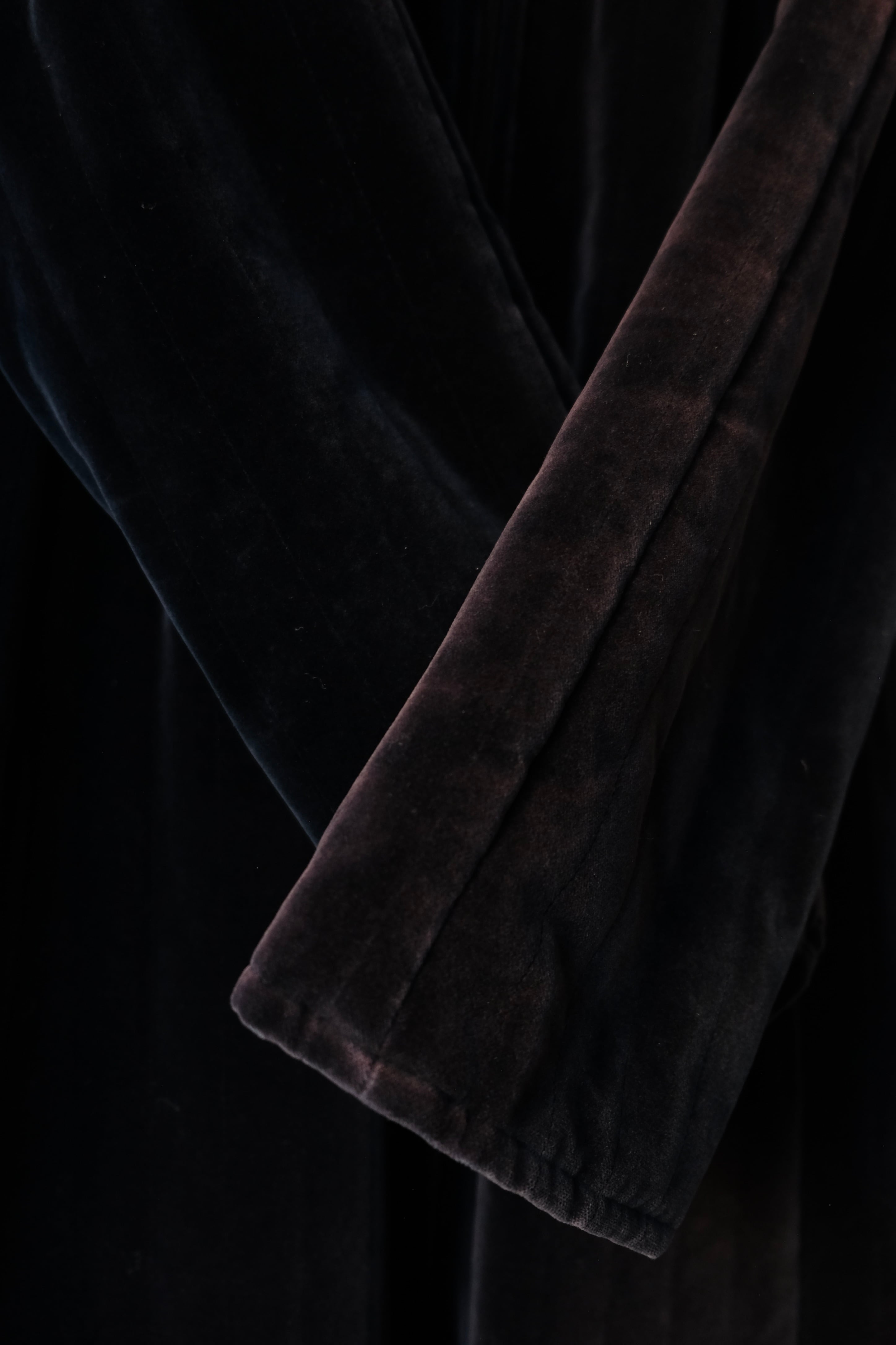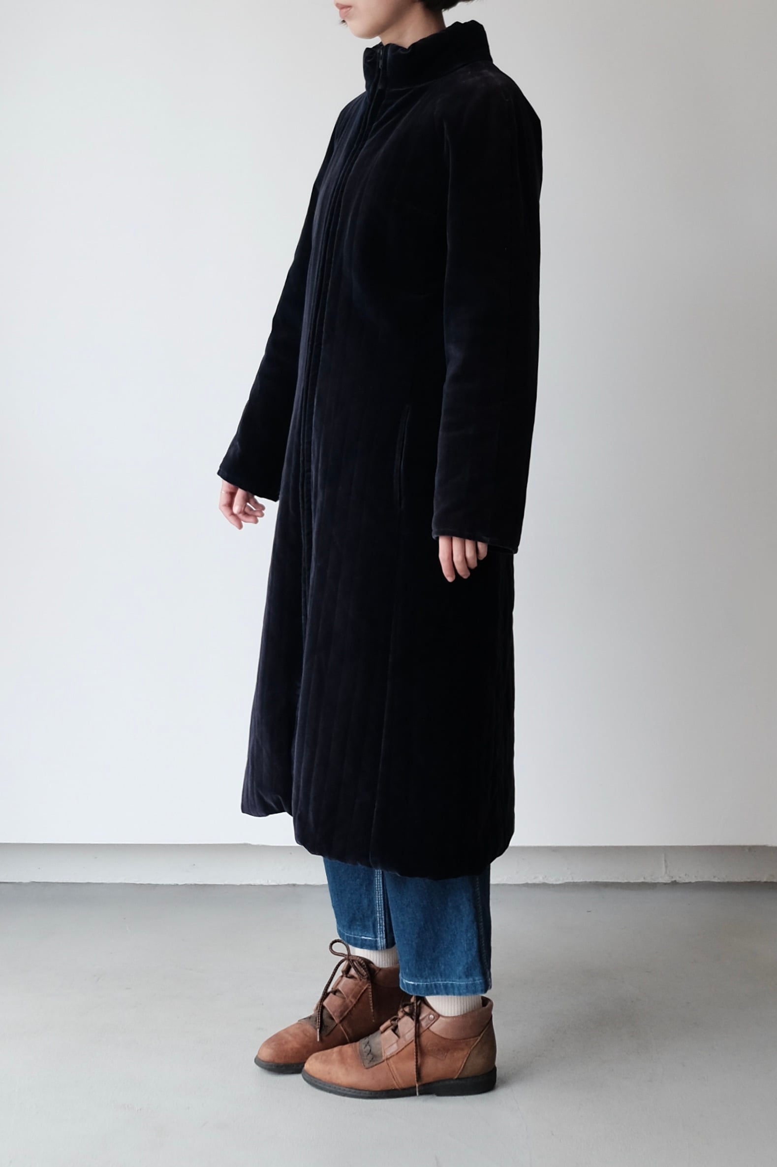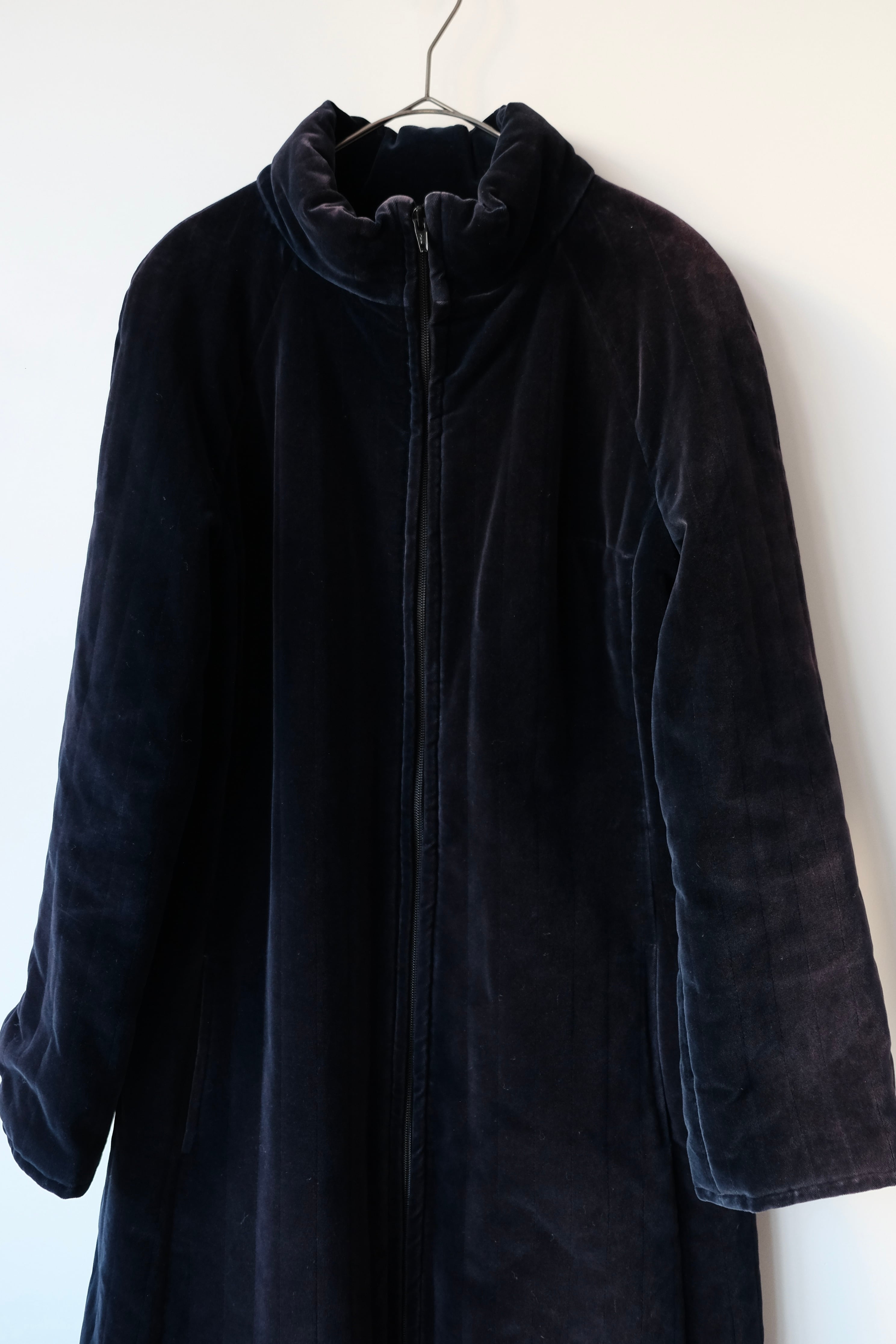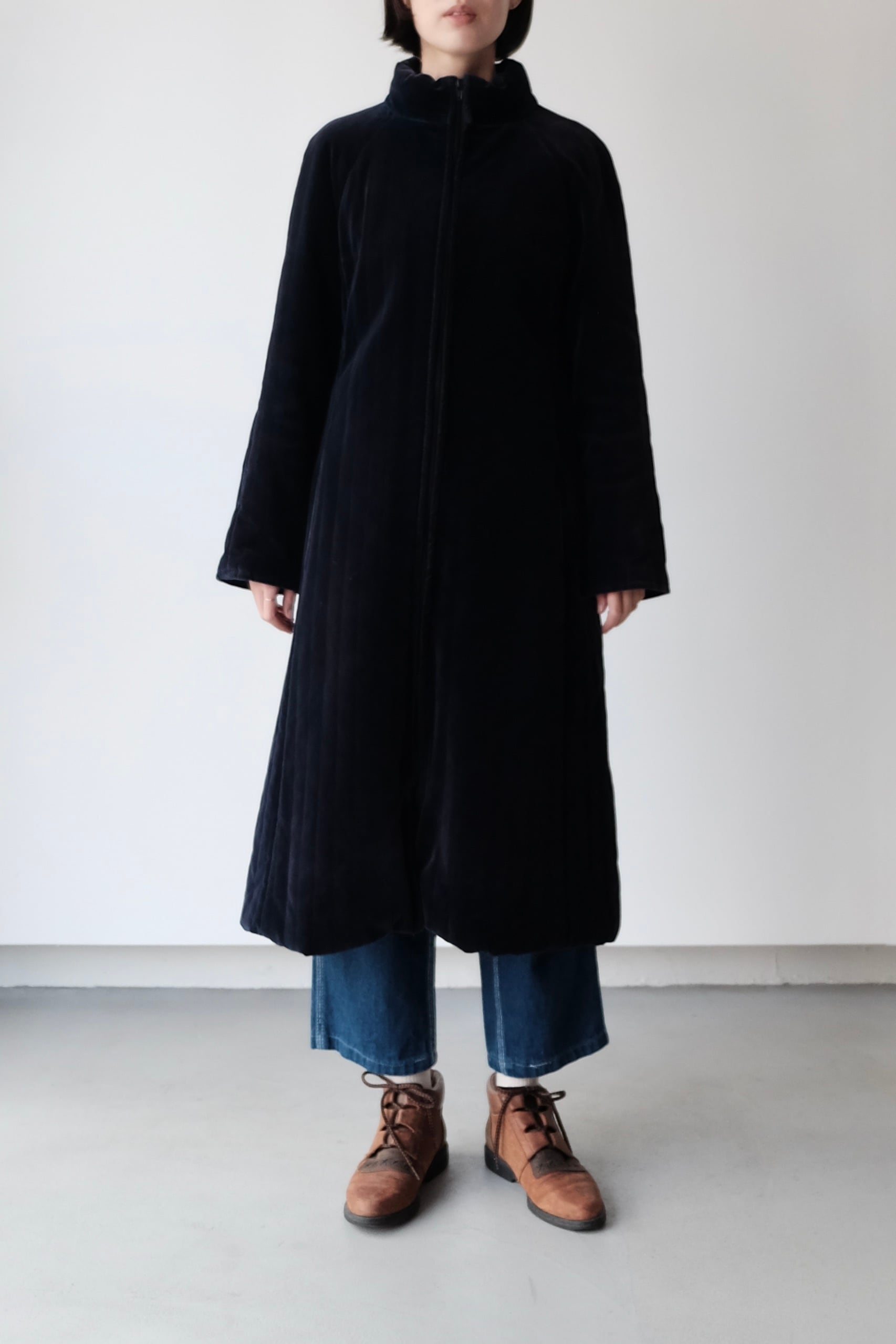 余計な装飾を削ぎ落とし、素材とシルエットで魅せたデザイン。 コットンベルベットの深みあるパープルカラーの生地は光の角度で表情を変え、シンプルなデザインに奥行きを与えてます。 高めのスタンドカラーは首元をすっきりと引き締め、直線的な美しさを際立たせるフロントジップもポイント。