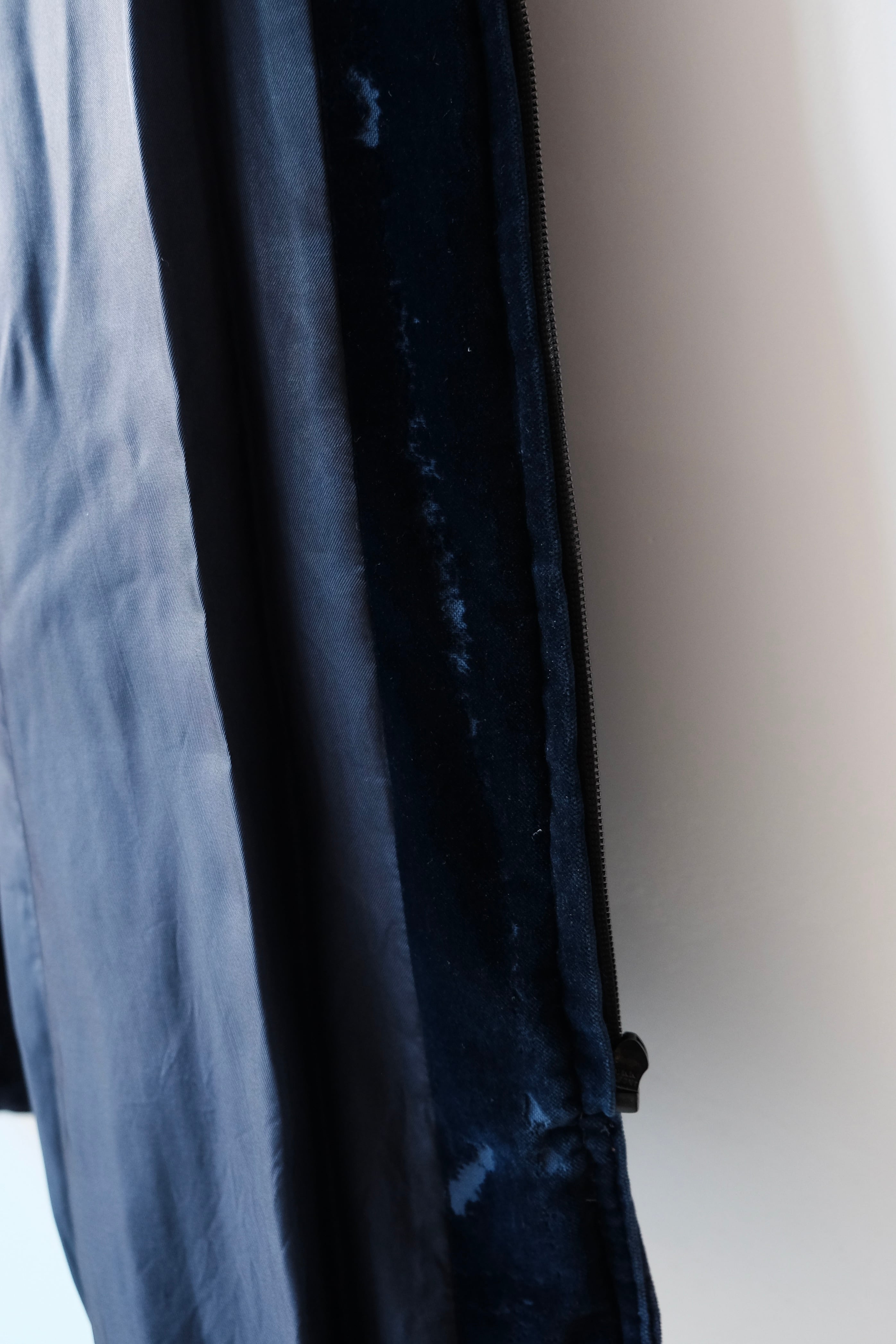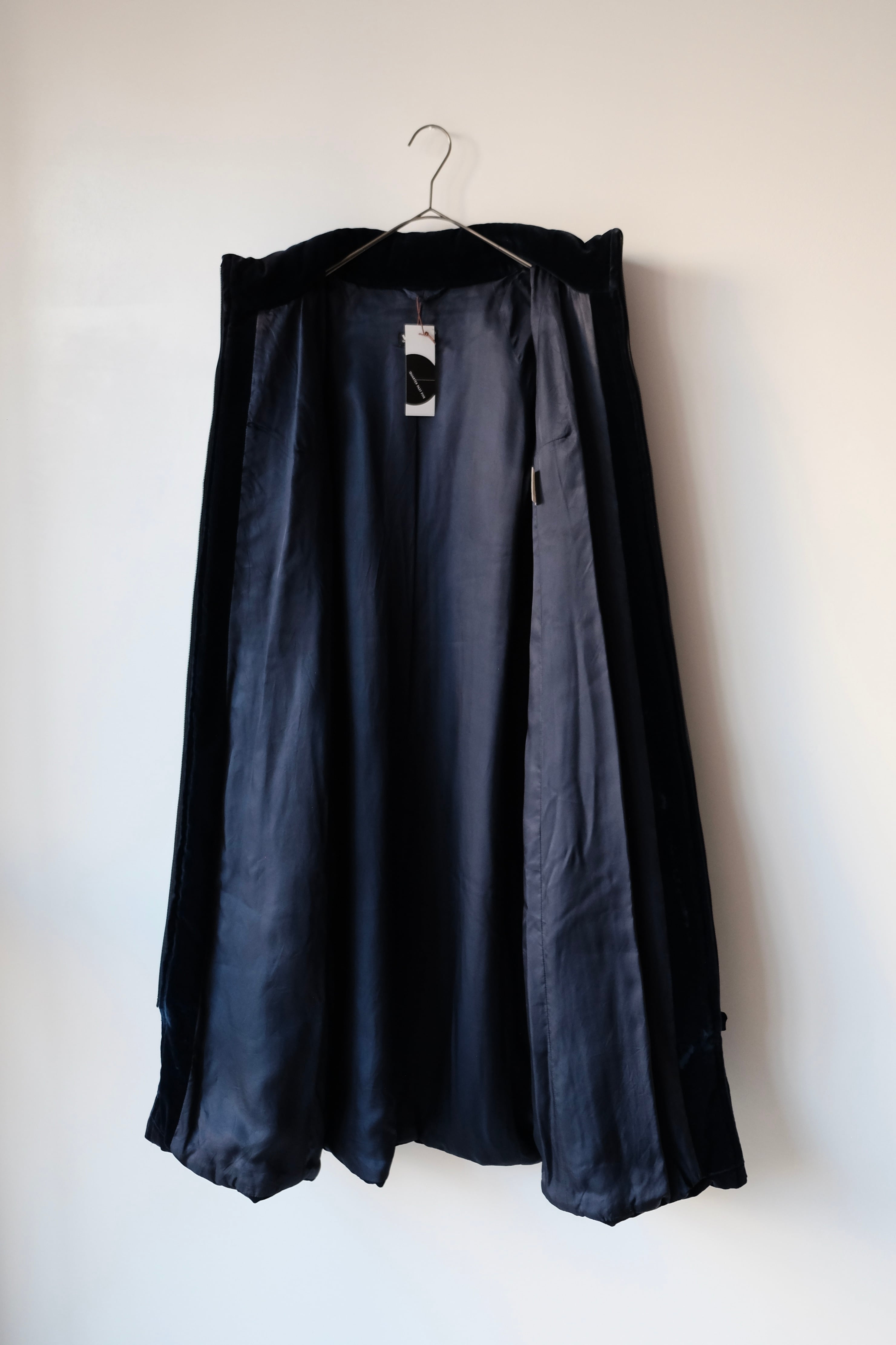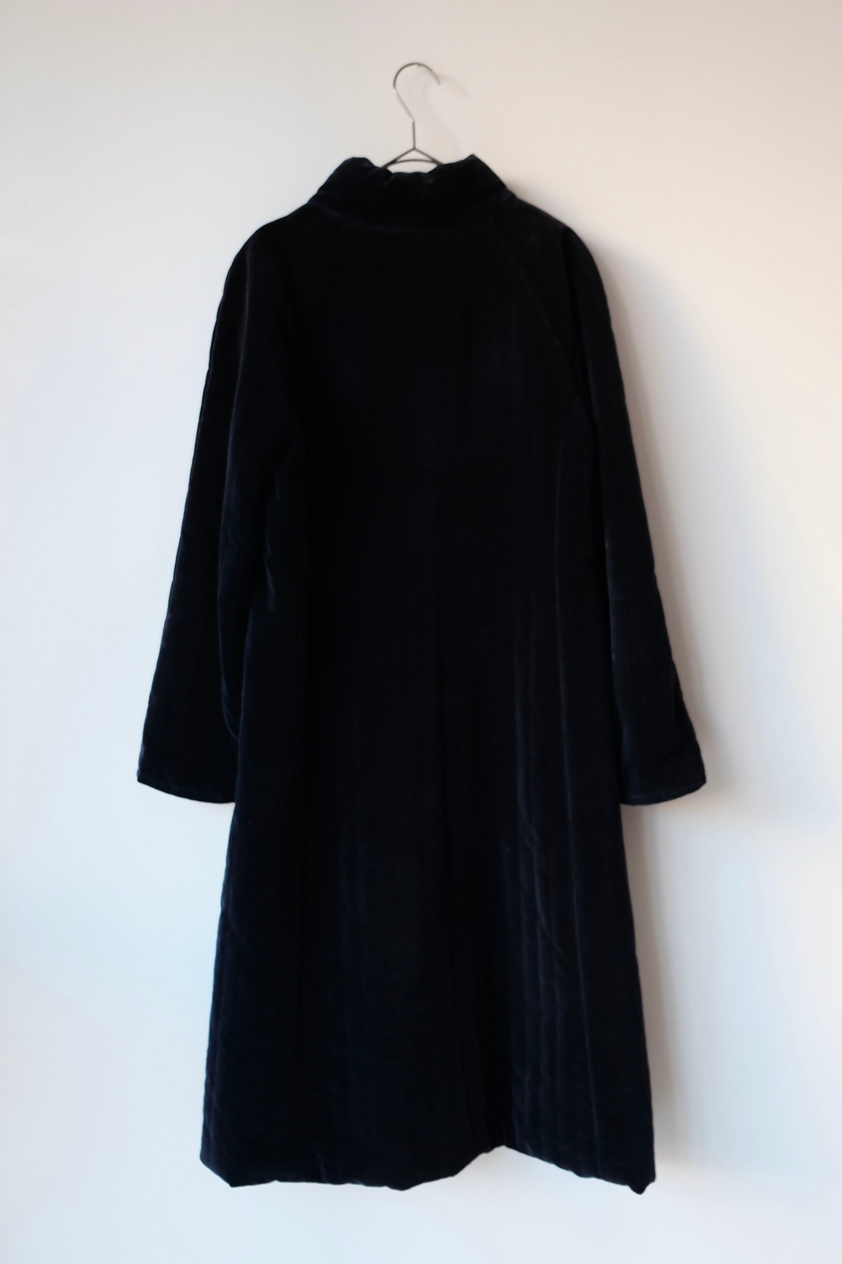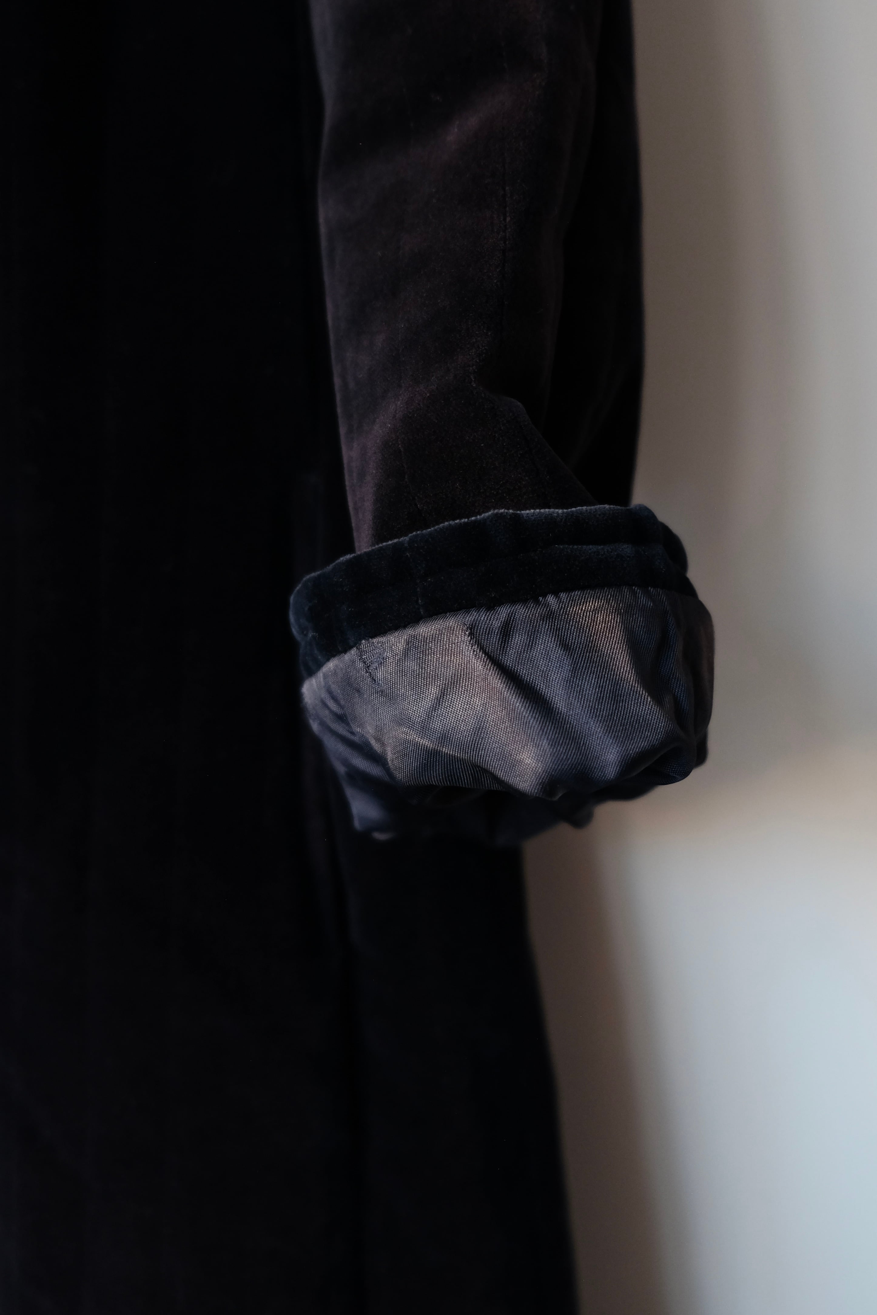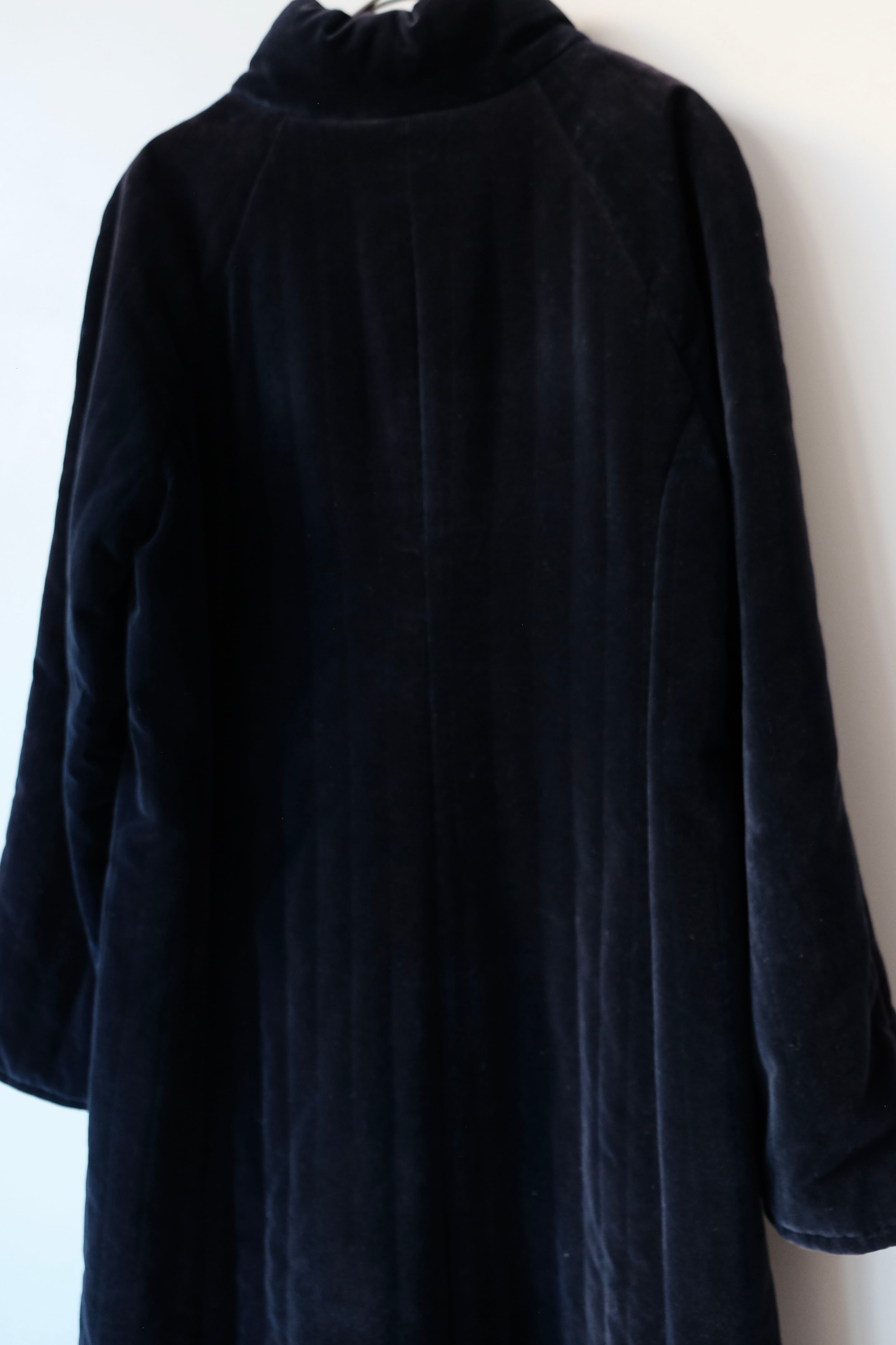 余計な装飾を削ぎ落とし、素材とシルエットで魅せたデザイン。 コットンベルベットの深みあるパープルカラーの生地は光の角度で表情を変え、シンプルなデザインに奥行きを与えてます。 高めのスタンドカラーは首元をすっきりと引き締め、直線的な美しさを際立たせるフロントジップもポイント。