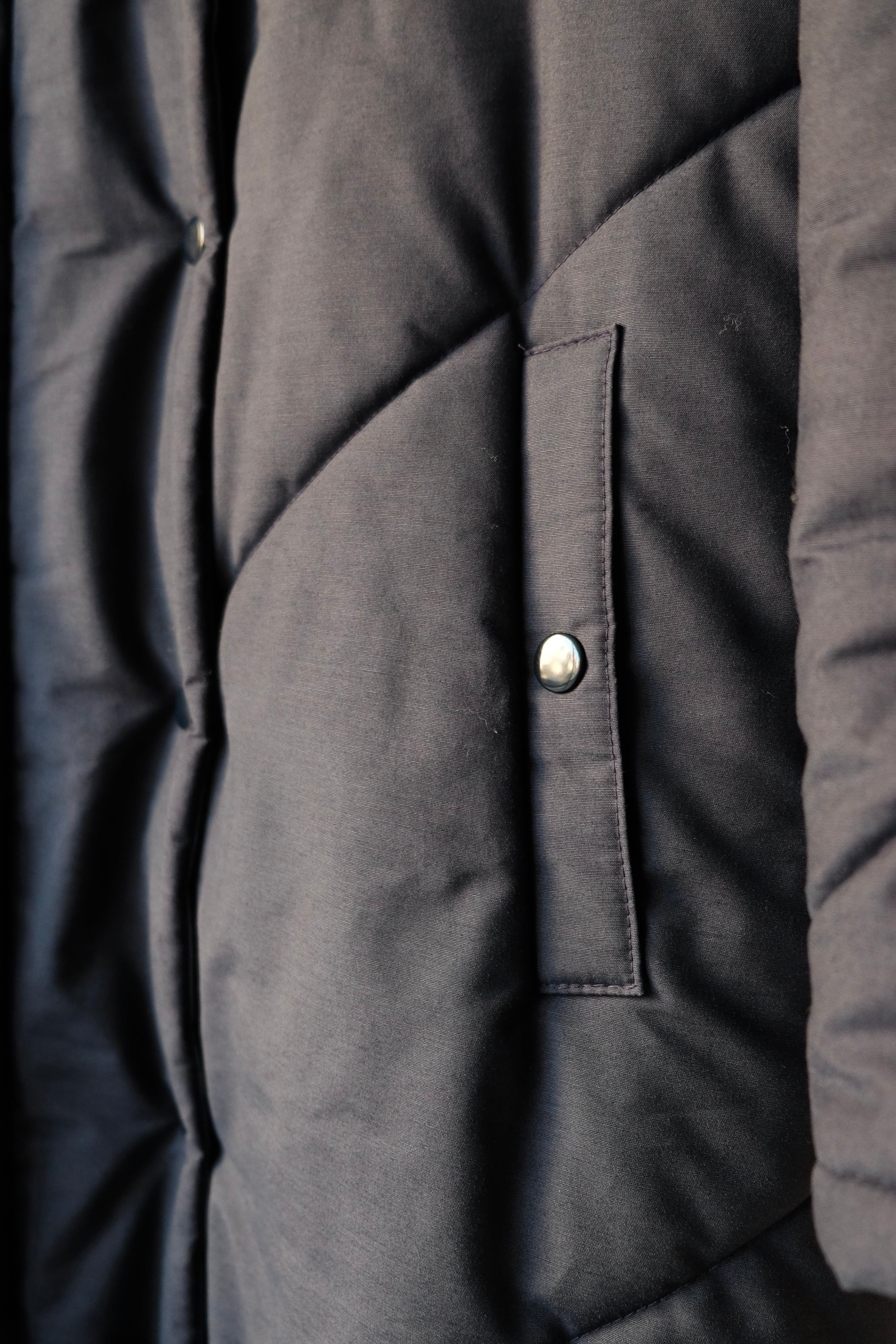 おそらく、こちらは本来はスキー用コートとして生産されたものではないかと思います。そのため中綿たっぷりのとても暖かい着用感で、真冬の防寒着としても遜色ない一着です。