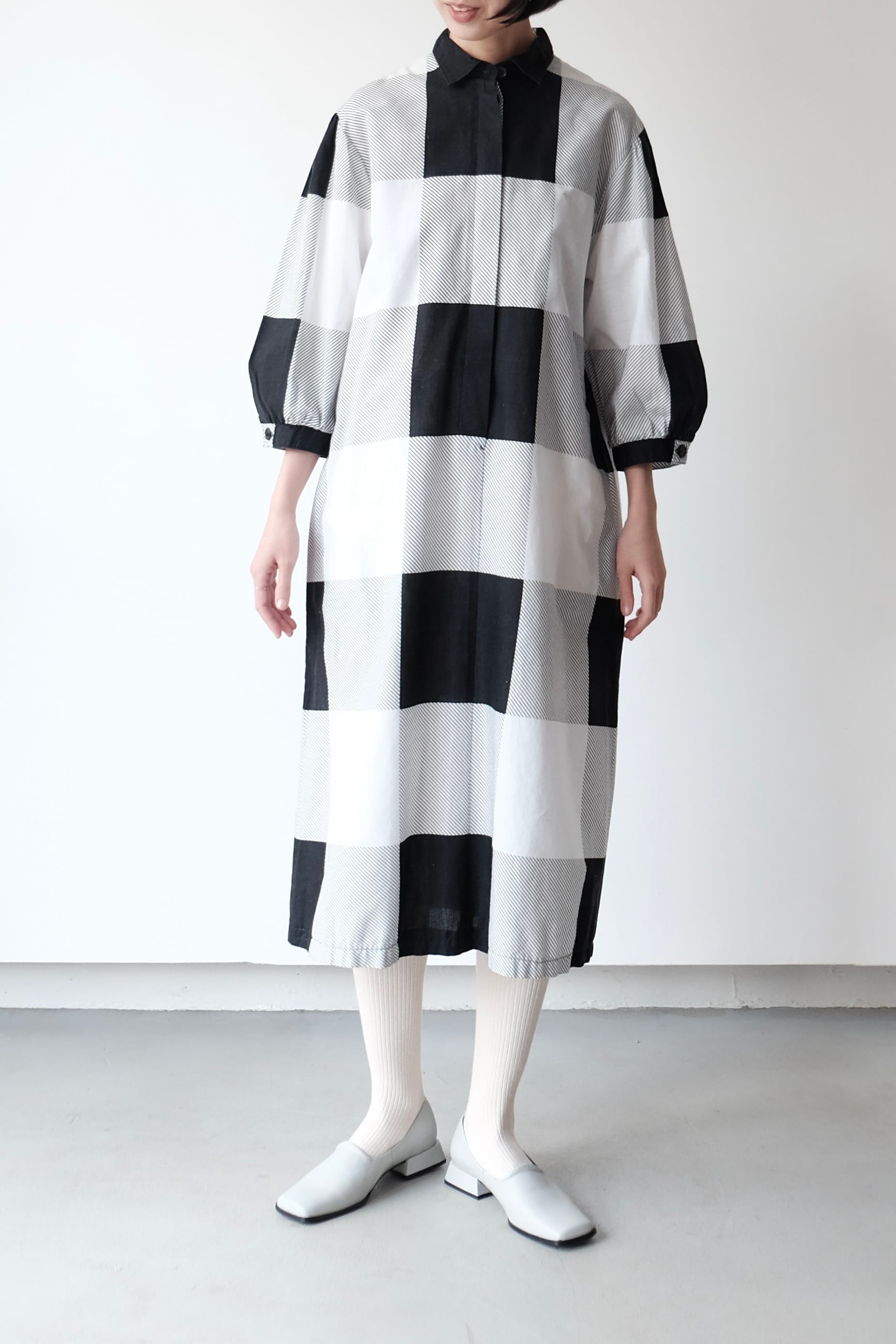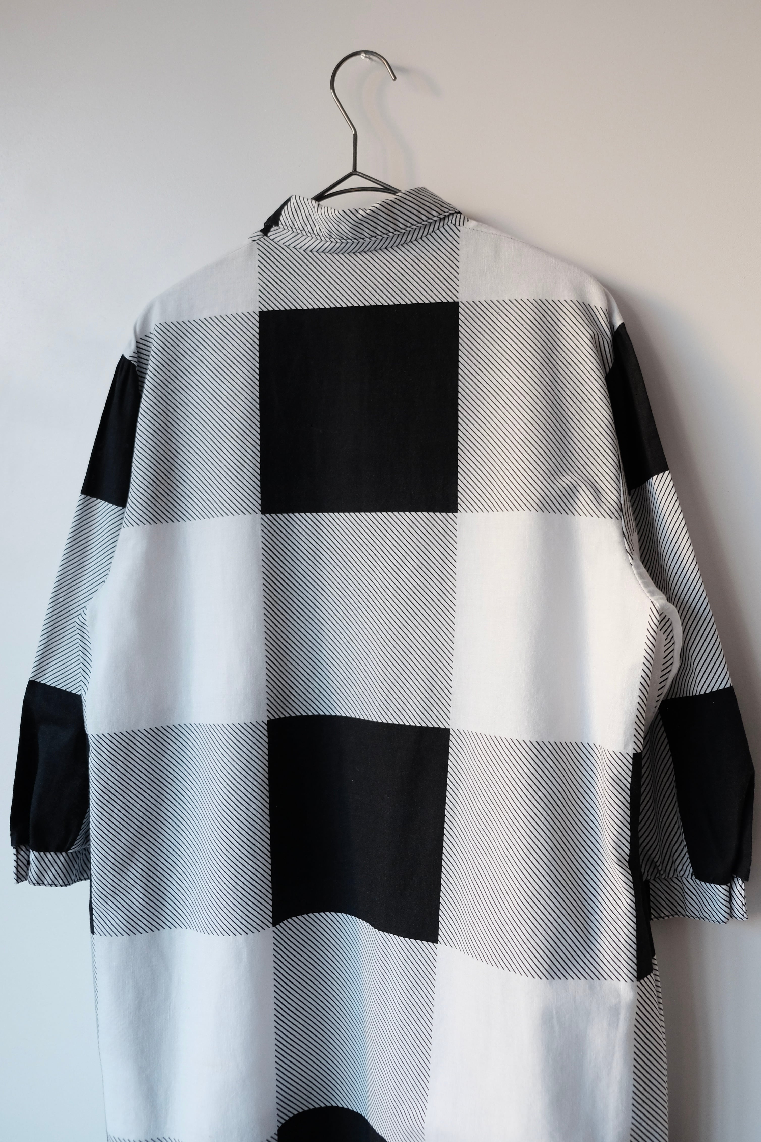 大胆なモノトーン・ビッグチェックで構成されたコットンドレス。こちらは1970年代頃のフィンランド製ヴィンテージのアイテムです。