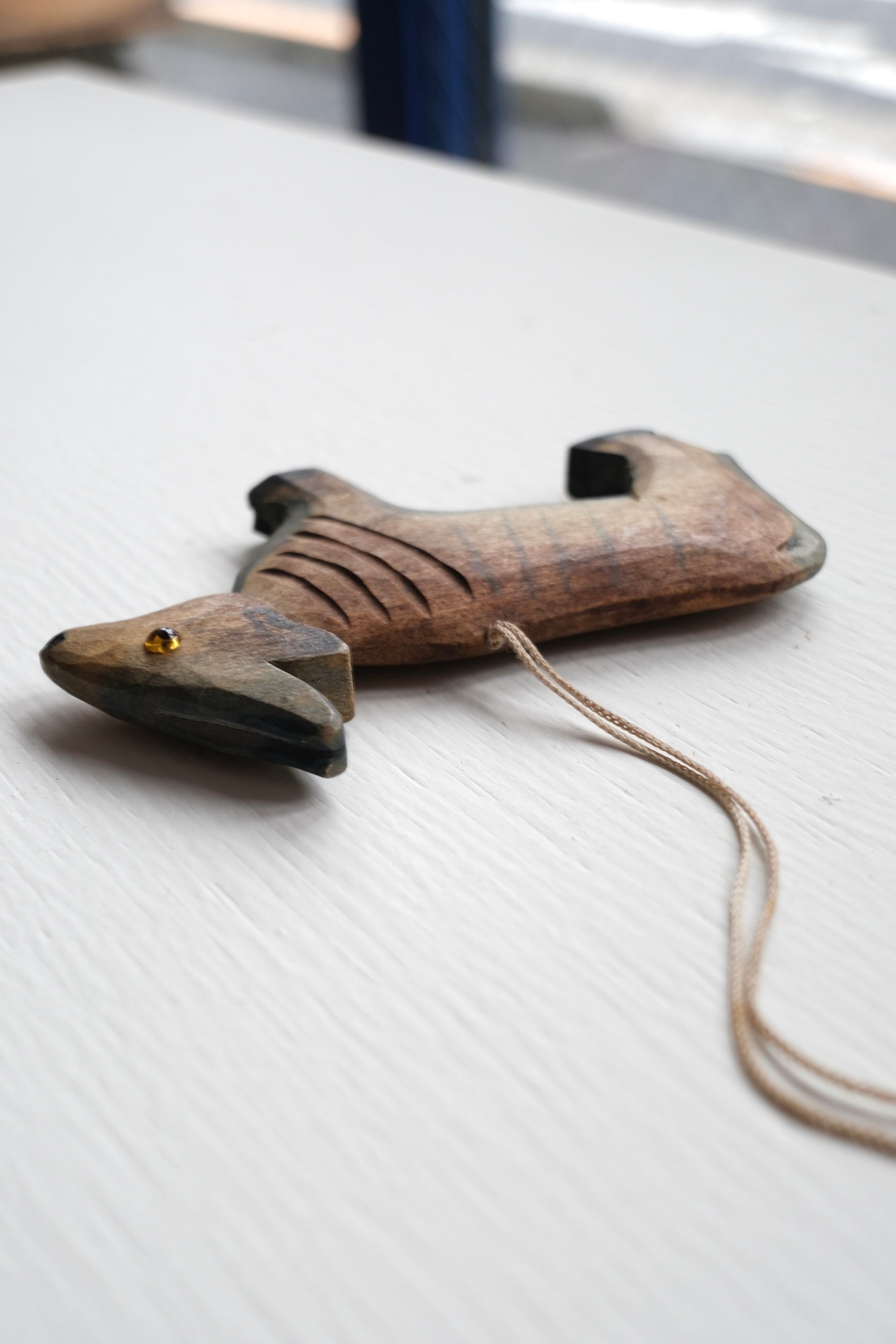 フィンランドで買い付けた木彫りのオーナメント。おそらくヘラジカかと思うのですが、もしかするとトナカイかもしれないし、また別の動物かもしれません。