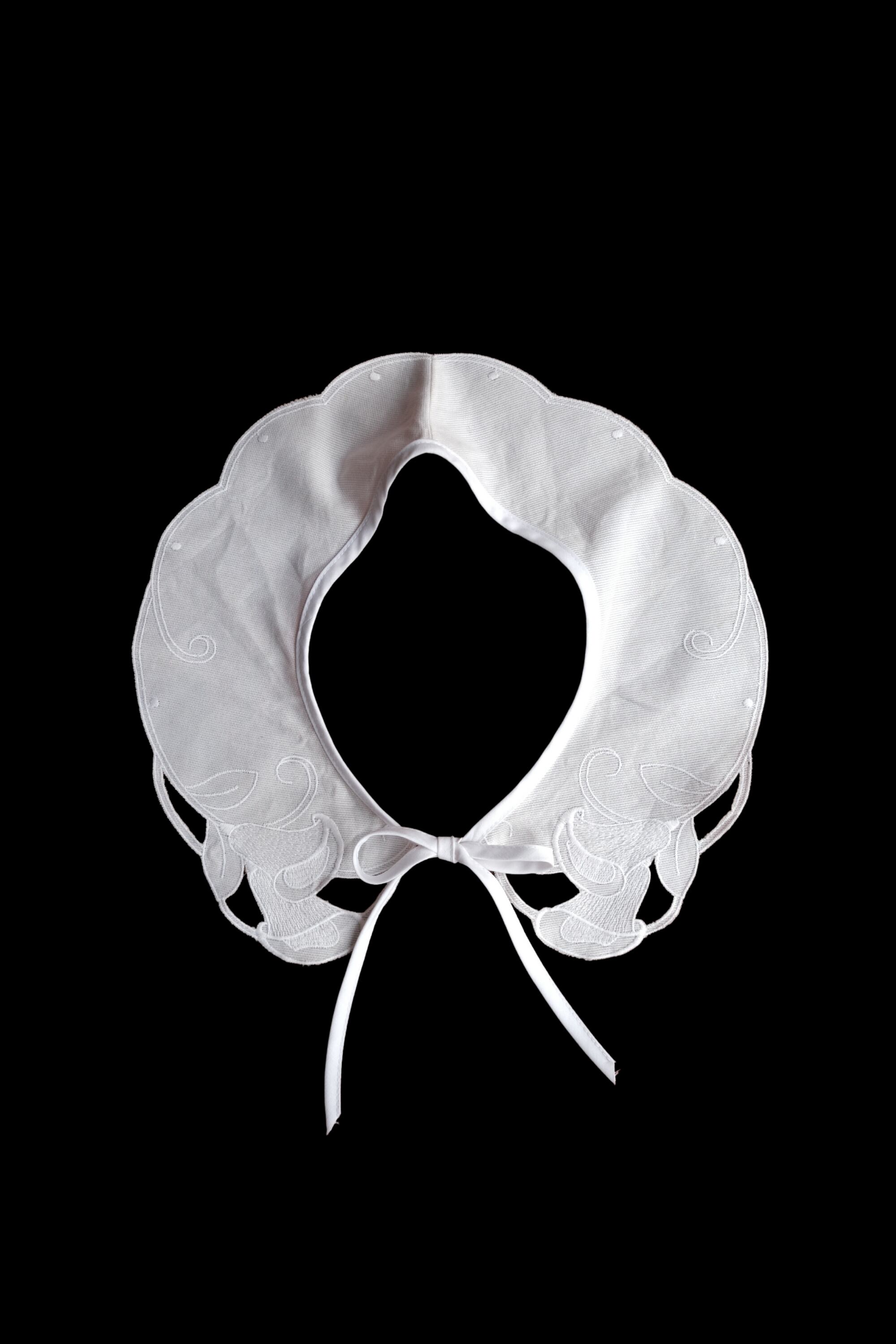 立体感のある刺繍とカットワークが施された、クラシカルな美しさが光るつけ襟。こちらはフィンランドで買い付けしたアイテムです。