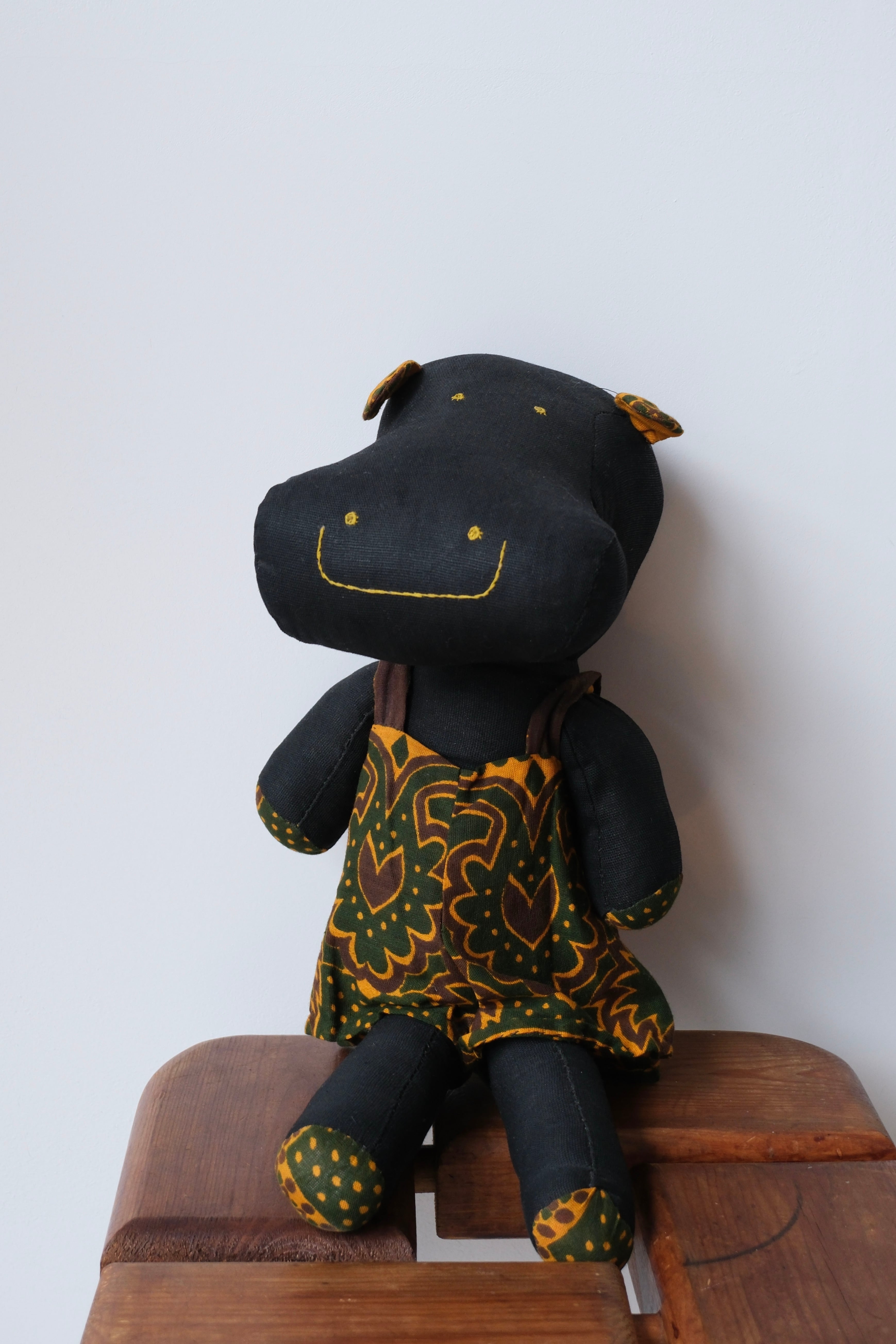 ハンドメイドのカバのぬいぐるみ。こちらはフィンランドのマーケットで出会った一品です。