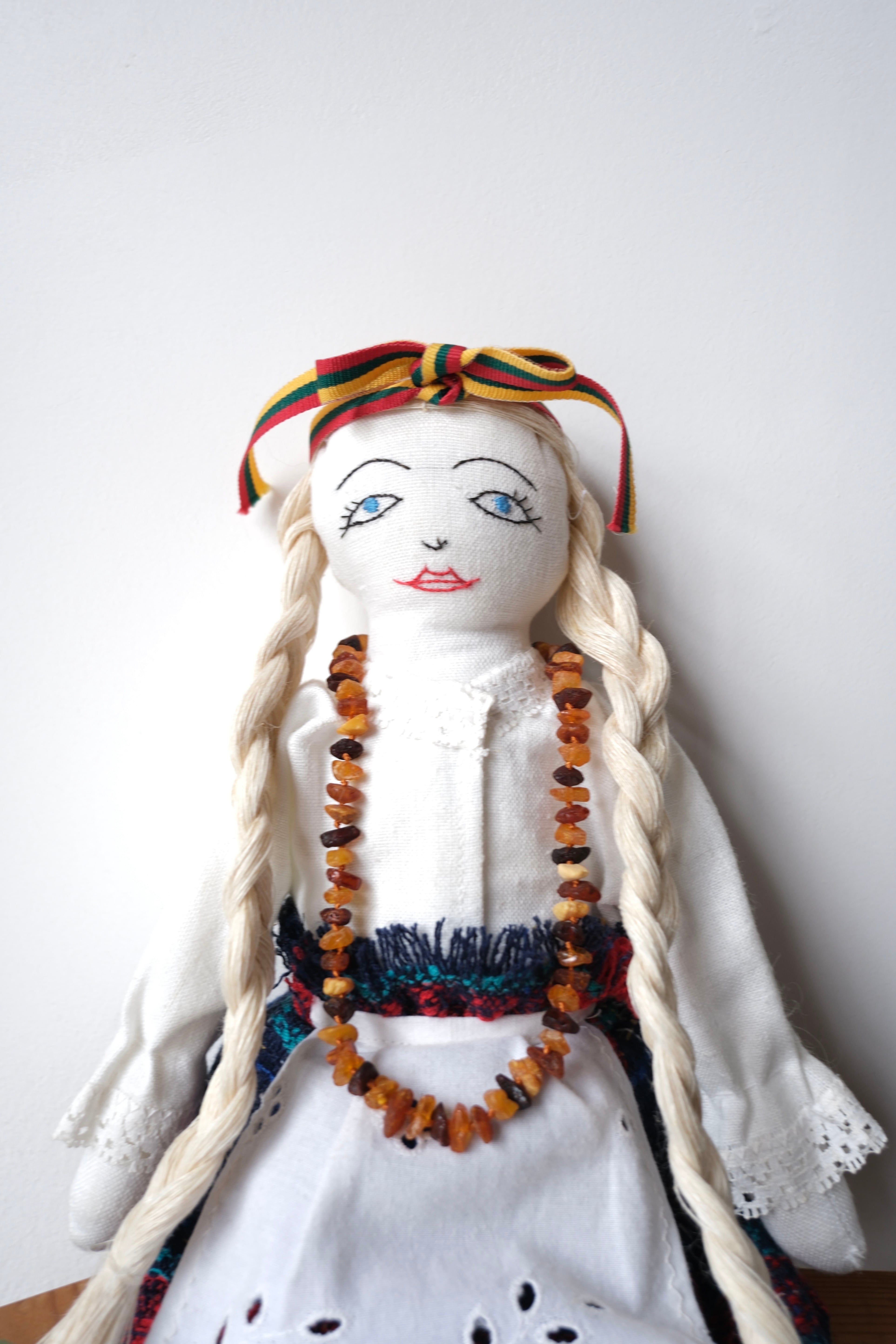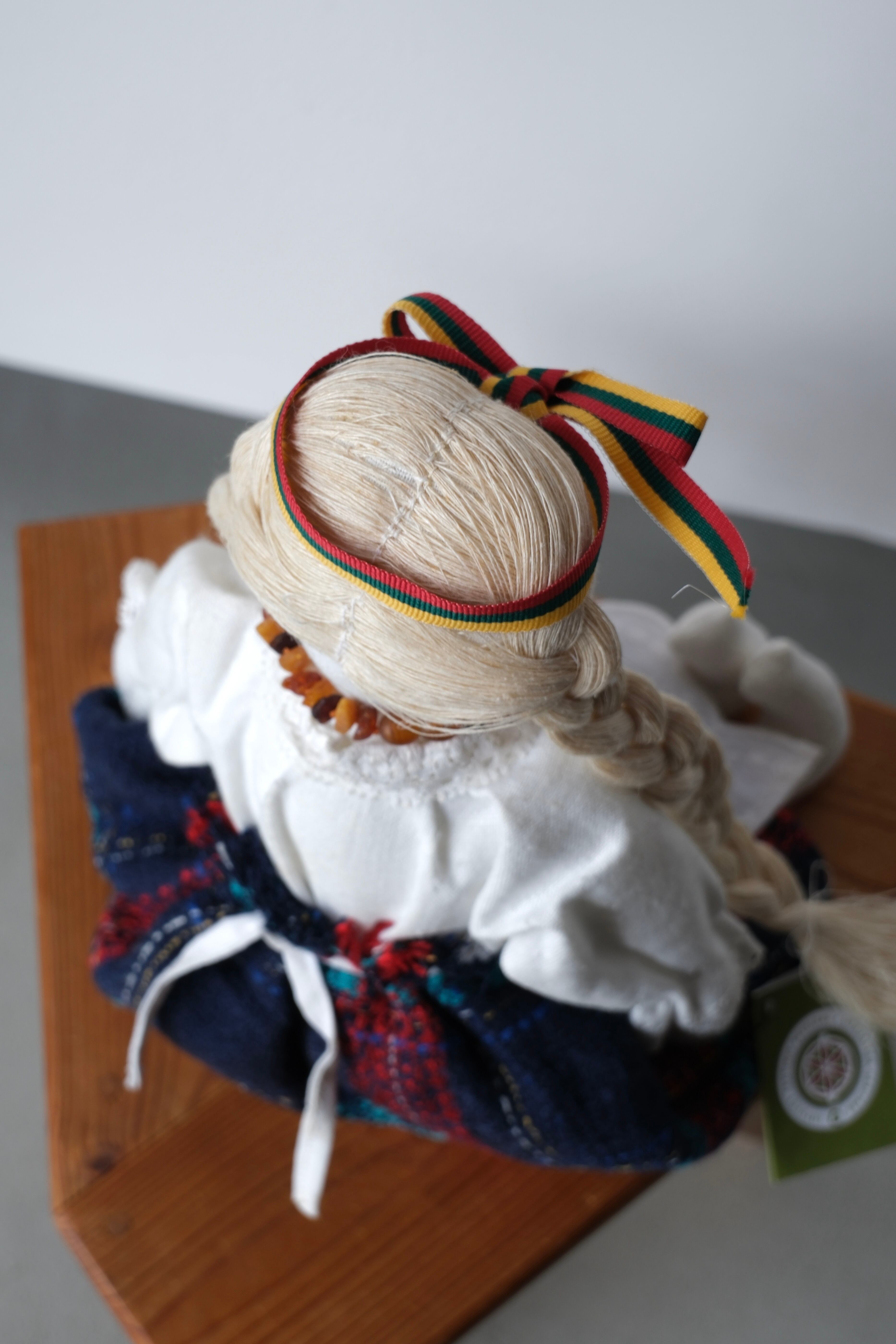 民族衣装を着たリトアニアのハンドメイドドール。リトアニアの特産であるリネン、アンバー(天然琥珀)が使われています。