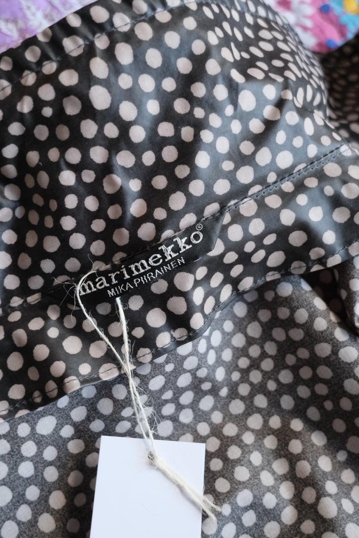 マリメッコの主要デザイナーとして活躍した、Mika Piirainen(ミカ・ピーライネン)デザインのPVC素材のレインコート。こちらは1990年代頃のヴィンテージアイテムです。