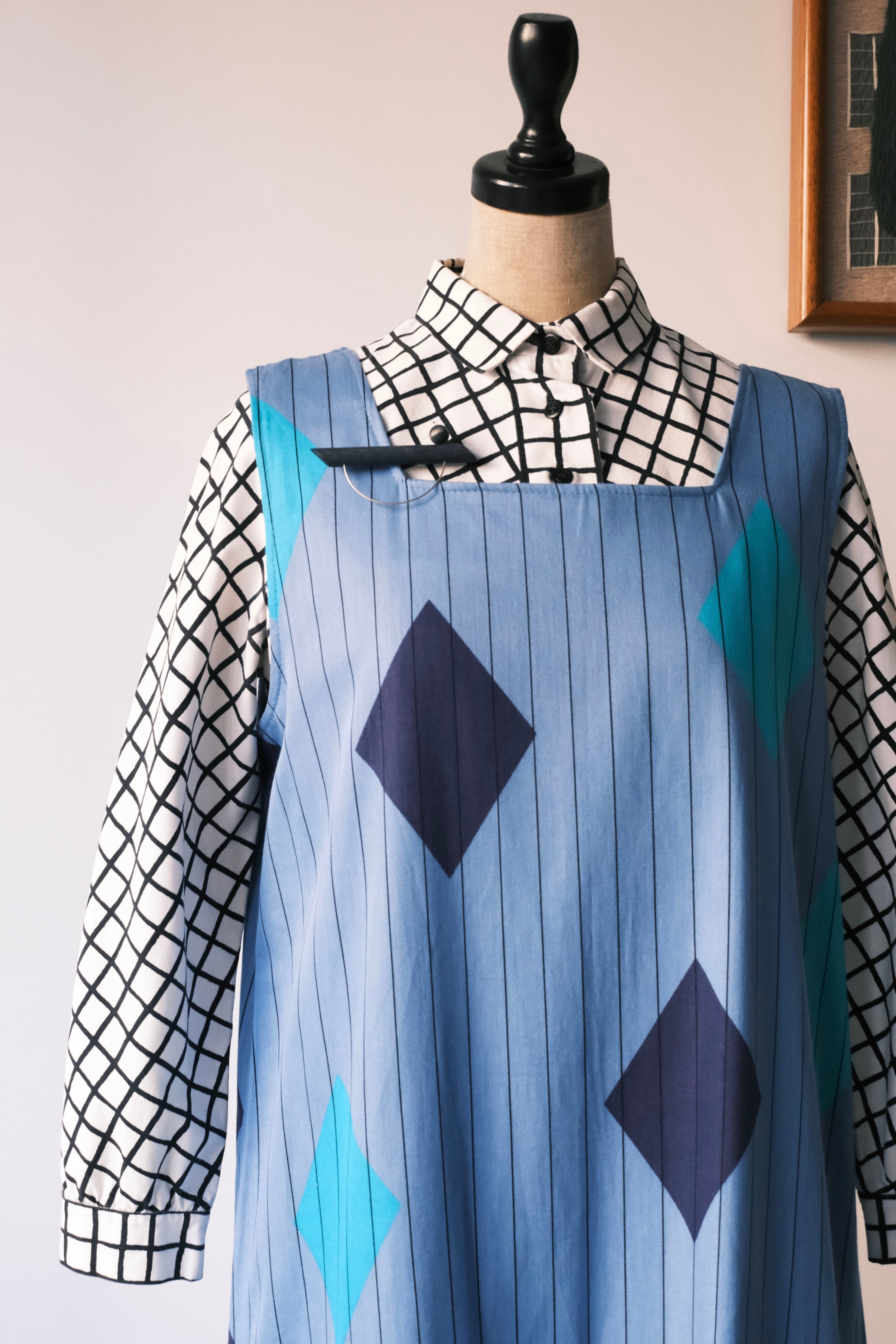 Blue diamond print dress