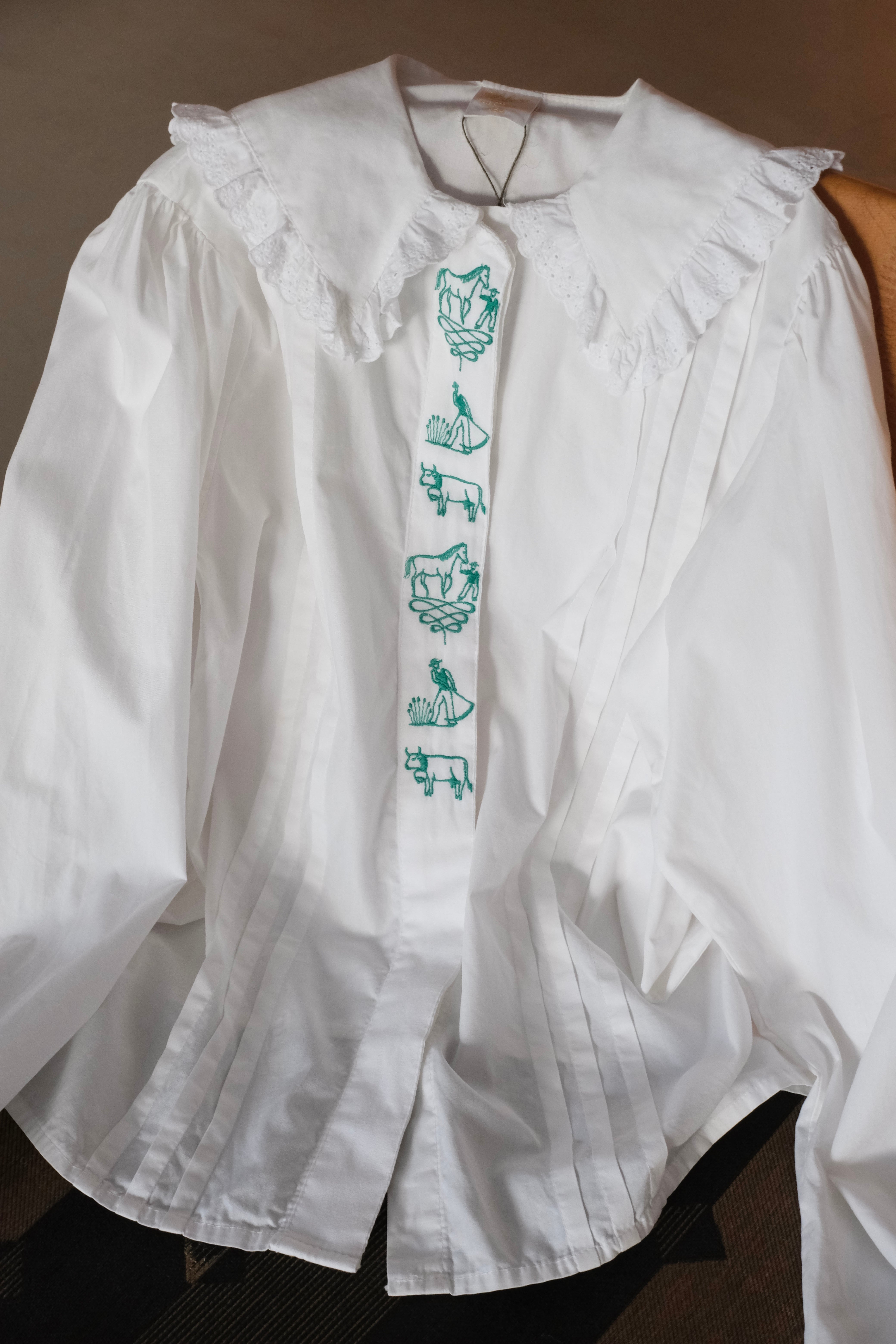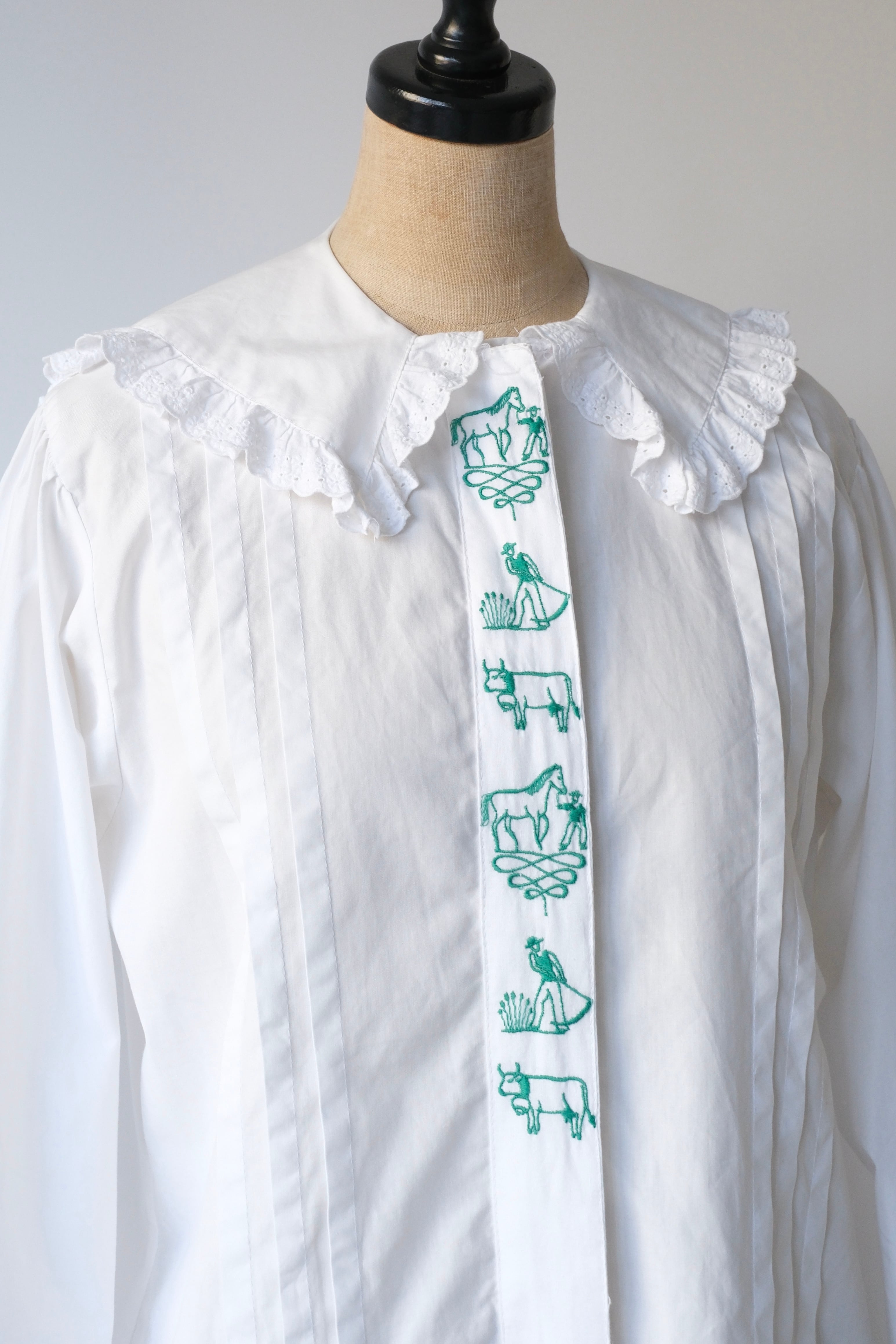 大きな襟のかわいい比翼仕立てのチロリアンブラウス。こちらは旧西ドイツのヴィンテージアイテムです。