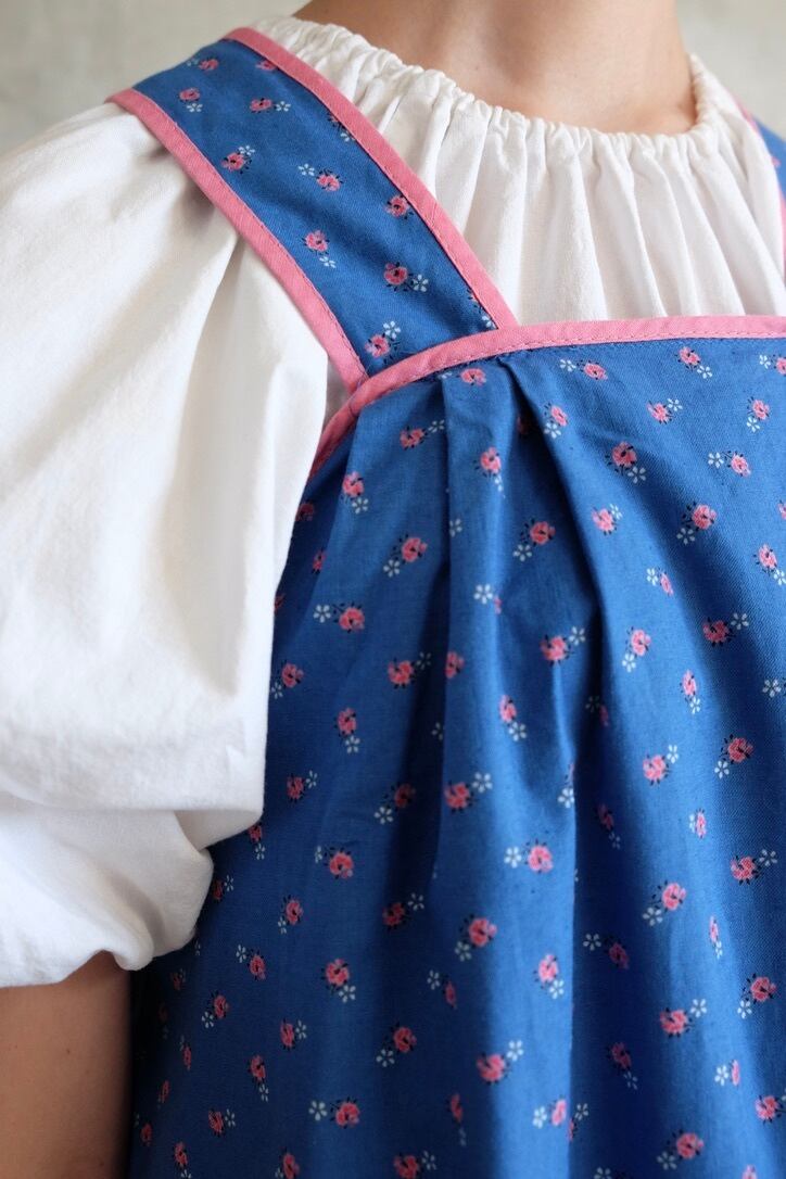 フィンランドの南東部からロシアの北西部にかけて広がるカレリア地方が起源の伝統的な民族衣装。背中でクロスするような形のストラップが特徴的なデザインです。